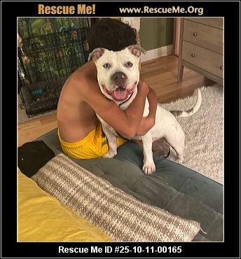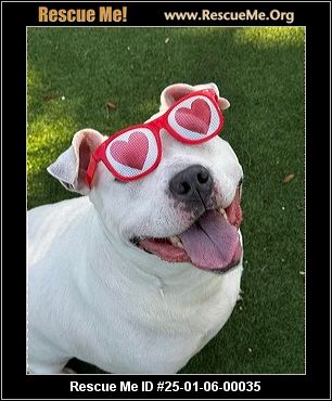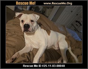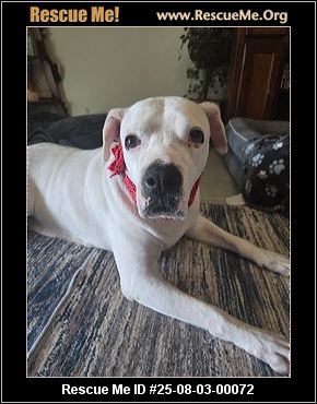 White American bulldog. Currently in a foster situation due to owner being incarcerated. Foster situation very near