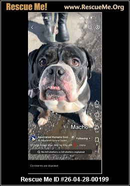 Macho is a 6 year old bulldog who is in the euthanasia list at the Newark 'Humane' society shelter Macho is a